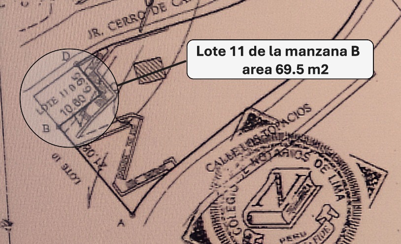 El lote 11 que forma parte de la manzana B de la lotización semi rustica Cerros de Camacho tiene solo un área de 69 m2 y se constituye como un lote de servicio publico que se independiza de la foja 204 del tomo 975 y se inscribe, en el primer asiento de la foja 9 del tomo 1081, a favor de las empresas eléctricas que construye la subestación eléctrica numero y registra su fabrica en el segundo asiento.